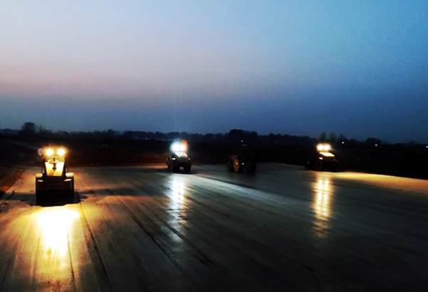 G329利辛绕城段新建工程项目计划工期18个月,面对施工工期紧、协调关系复杂、施工组织难度大等问题,项目部领导班子迅速调整,采用项目部协调例会和现场生产例会相互结合的创新模式,合理分配各工区人员队伍及机械设备,通过建立健全各项规章制度,不断强化内部管理。根据项目需要,充分推广应用“四新”科技成果,采用新型化学泥浆护壁、混凝土裂缝控制、预应力技术、高性能混凝土等技术措施,为项目生产提供保障。与此同时,沿线增设钢筋加工场,解决钢筋笼制作和运输问题;河道内建立挡水围堰并采用埋设深护筒的方法,保障桥梁桩基的顺利成孔;路基施工、承台开挖、混凝土浇筑等层面,多单位相互协作,多工序交叉作业,以科学的管理保证年度目标的顺利实现。10月29日,K0+000-K2+600标段日进土量约5000方,近20台机械同时作业,技术人员工区内来回穿梭,忙的不亦乐乎。掌握了工程施工特点和创新技术的G329项目员工,逐个攻克遇到的各种难题,不断掀起促生产、促超产的施工浪潮。