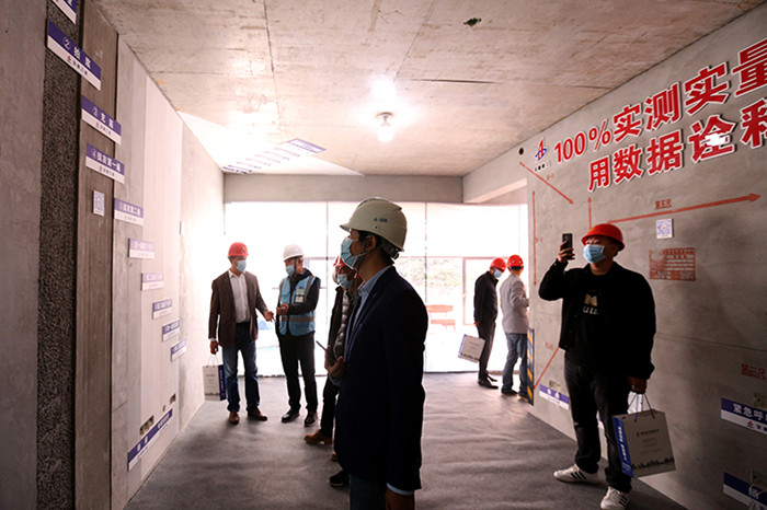 观摩团先后参观了现场安全体验区、现场质量样板区、楼体实体质量等,对项目质量安全管理、实测实量检查、信息化应用、样板先行制度、BIM技术应用等给予了高度评价。