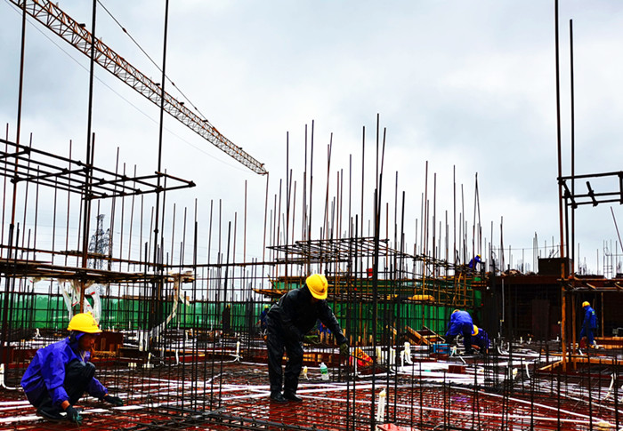 湛江力高项目冒雨绑扎钢筋,抢工正当时