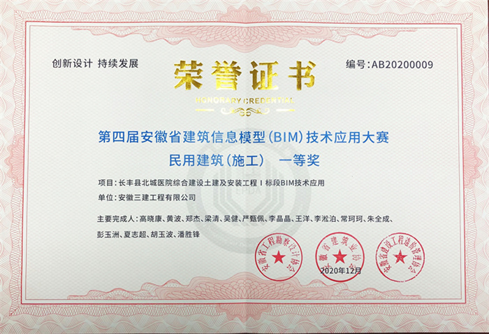 近期,安徽三建公司喜获三项BIM大奖!《省重点实验室-抗震检测实验室BIM综合深化应用》获第五届中国建设工程BIM大赛综合三类成果,长丰县北城医院项目、合肥市青少年综合实践基地新建工程分获2020年度安徽省第四届建筑信息模型(BIM)技术应用大赛一等奖和三等奖。