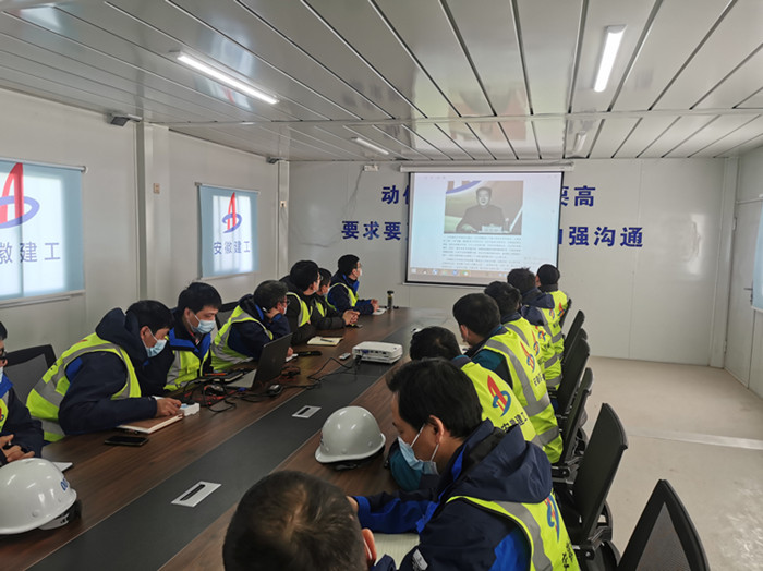 打造千亿安徽建工!集团2021年工作会提出的宏伟目标振奋人心!2月5日远在雄安的安徽三建容西片安置房项目全体管理人员利用中午休息时间,集中学习集团2021年工作会议精神。一股暖流在冰冻的北国雄安涌动,项目团队精神振奋、意气风发。