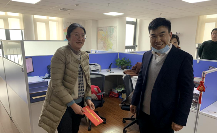 2月5日下午,安建地产党委副书记、总经理杨海飞慰问天长公司职工徐园园。
