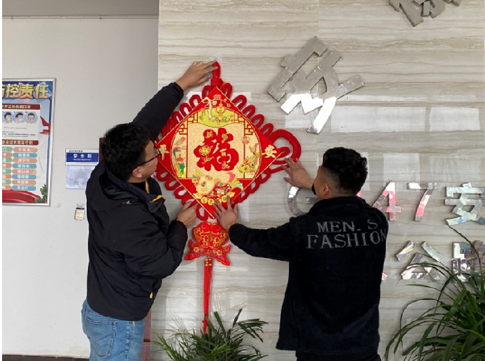 为了将“年味”注入进每一个不能回家的员工心中,让新年更有烟火气、仪式感,项目部挂中国结、贴春联、送福字,为做好疫情防控工作就地过年的一线建设者增添“年味”。员工们聚在一起喜迎新年,互相祝福,年味浓浓,感受着新春的温暖,营造了春节喜庆祥和的节日氛围。