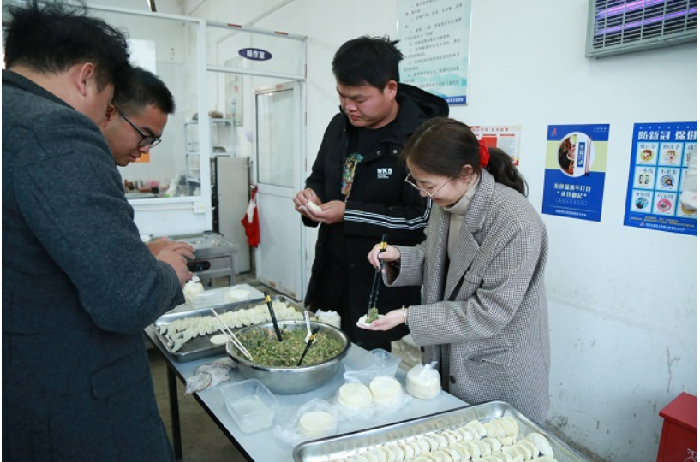 芜黄03标项目春节前,职工食堂组织了包饺子活动,大家围在餐桌旁有说有笑地开始准备,有人和面、有人擀皮儿、有人包饺子,分工明确又配合默契。大家在欢乐、温馨的气氛中相互帮助,密切配合,个个大显伸手,充分展示着自己的手艺,互相传授着包饺子的经验,在欢声笑语衬托出浓浓的春节气氛。
