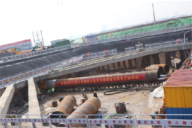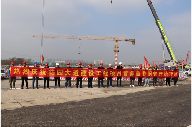 3月2日9时18分,安徽路桥集团花园大道(徽州大道-包河大道)建设工程隧道管幕首节钢管开始顶进。