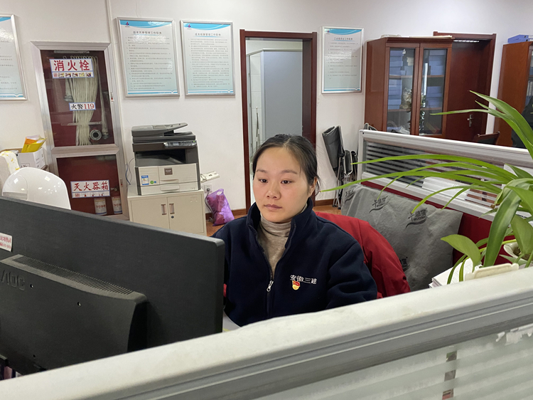蚌埠公司淮南鼎元世家项目部核算员黄梦玲正在分解工程量报招标计划、整理竣工项目成本资料