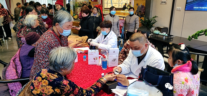 阜阳支部组织开展抗“疫”温暖人心活动。近期气候多变、流感易发,3月5日-6日阜阳支部开展“国企抗疫 健康随行”活动下乡,专家医生们先后到达阜南县会龙镇、段郢乡和我们雍和府售楼部,活动主要面向乡镇群体人员开展免费义诊,普及“疫情知识”和健康知识的宣传,活动现场爱心小分队还为群众准备了免费口罩,为了广泛普及健康知识,提升乡镇居民对健康理念,使乡镇居民远离疾病、更好的了解自己的身体状况,免费为居民测量血压血糖、心率、肺部听诊等,并现场进行健康管理指导,很多老人闻讯赶来,围在工作人员身边,询问健康常识。此次活动的开展,不仅为乡镇老人提供了便利,更是把爱送进了乡镇,送到了居民的心窝里。安建地产阜阳公司用实际行动传递国企的正能量,让更多需要帮助的人感受到来自社会的温暖和关怀,践行国企社会责任,更进一步树强安建地产形象,努力推进阜南县公益事业的发展贡献力量。