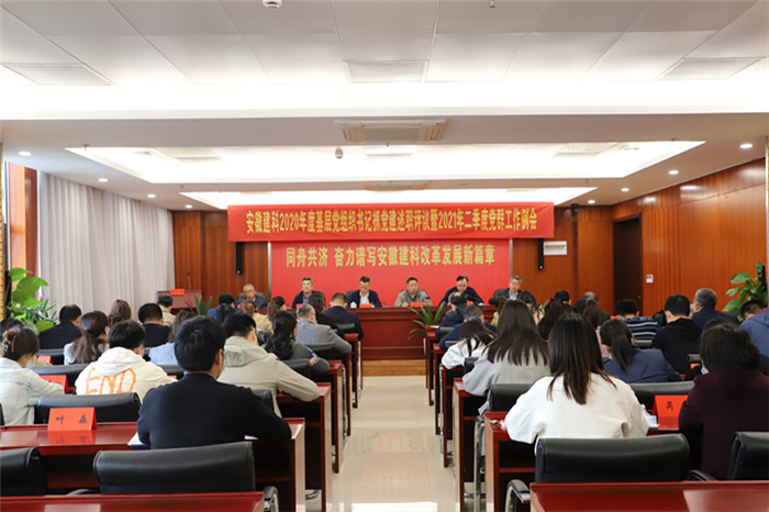 4月16日下午,安徽建科党委召开2020年度基层党组织书记抓党建述职评议暨2021年二季度党群工作例会,听取部分党组织书记抓党建述职汇报,部署下一阶段工作任务。党委书记、董事长项炳泉出席会议并讲话。院领导班子成员、所属各党支部(总支)班子成员、党小组组长、各党群工作部门负责人、2020年度党员“学习标兵”受表彰人员以及部分民主党派人士代表参加会议。