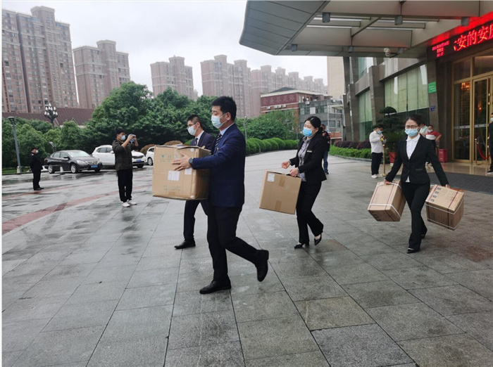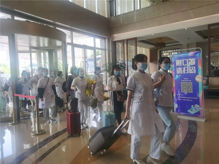 临危受命,快速响应。六安酒店以高度的政治意识、责任意识和抗疫安全意识,精心组织、周密安排,制定了详细的接待方案。准备房卡、集中清理房间、设计盒饭菜单、联系防疫物资等分工明确、责任到人,为“逆行者”们提供了细致、周到、贴心的服务,赢得了医疗队的一致赞扬。临别之时,医疗队员与酒店管理团队高喊“六安加油、中国加油”,依依惜别。