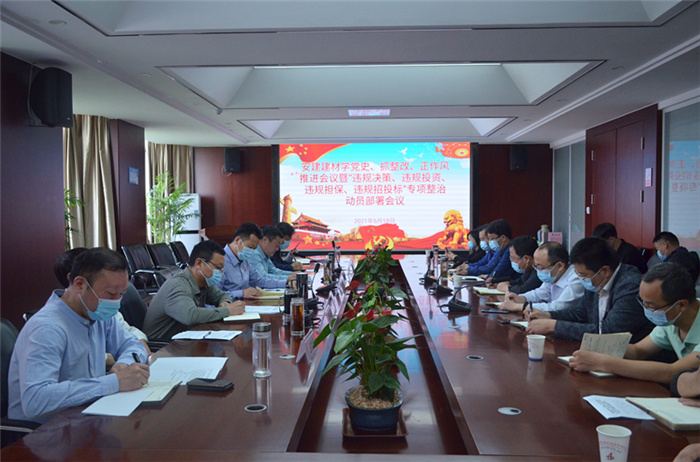 5月18日,安建建材党委召开学党史、抓整改、正作风推进会议暨“违规决策、违规投资、违规担保、违规招投标”专项整治动员部署会议,传达学习了集团相关会议精神、公司“四个专项整治”工作方案和有关工作机构人员组成的通知,部署开展“四个专项整治”工作。安建建材党委书记、董事长张键出席会议并讲话,党委副书记、董事、工会主席胡运春主持会议。