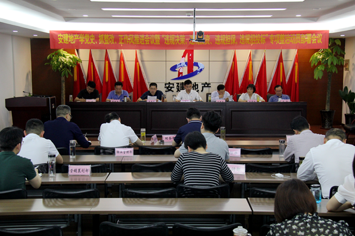 5月27日,安建地产在安建国际大厦21楼会议室召开学党史、抓整改、正作风推进会议暨“违规决策、违规投资、违规担保、违规招 投标”专项整治动员部署会议。安建地产领导班子成员,机关部门正副职,机关全体党员在主会场参会,所属各单位领导班子成员及各部门负责人在视频分会场参会。
