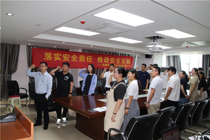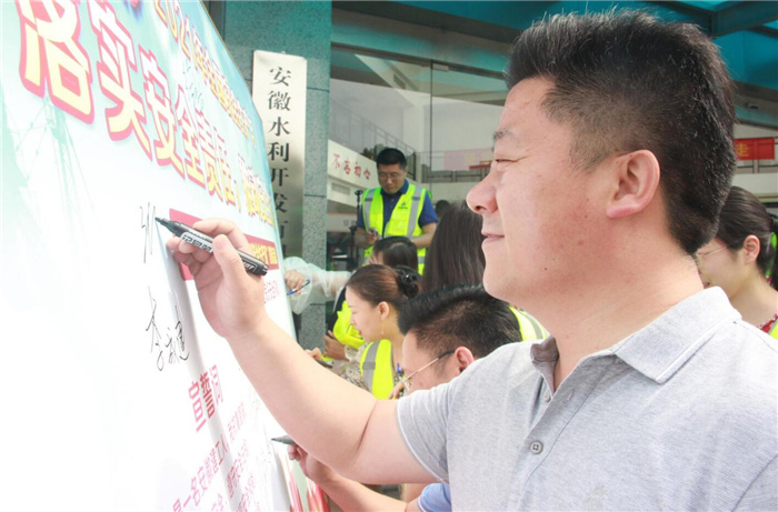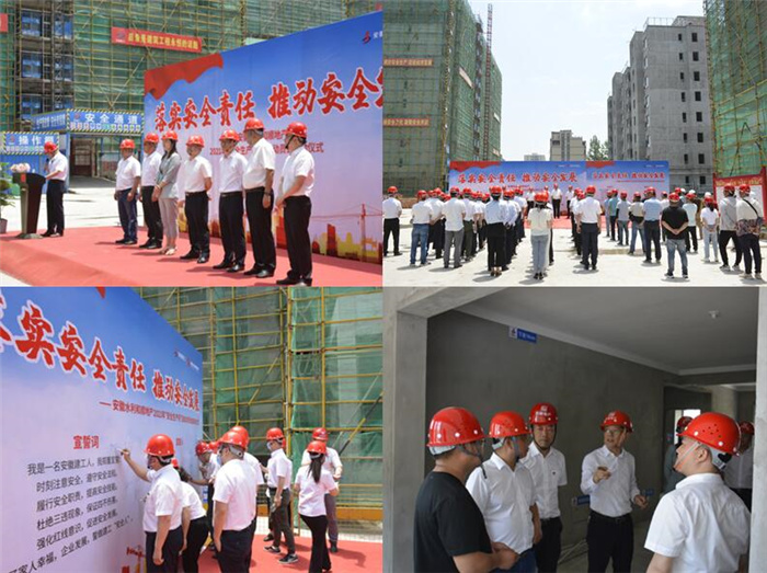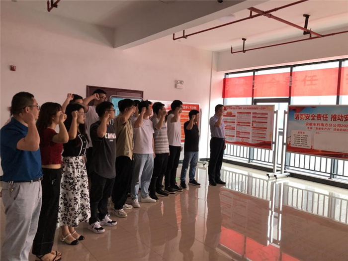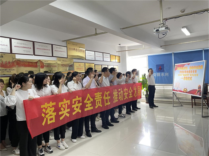 与此同时,安徽水利各子(分)公司和项目部,约6500多名干部员工在本单位驻地同步参加宣誓活动,并组织开展了丰富的安全月活动。