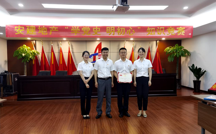 为庆祝建党100周年,提升广大职工学党史的热情和成效,弘扬党的优良传统,砥砺初心使命,7月8日下午,安建地产在安建大厦21楼第三会议室开展“学党史 明初心”知识竞赛,同兴公司、阜阳公司、固镇公司、淮北公司、瑶海公司、沛县公司以及机关7个党支部21名选手参赛。公司领导出席并为获奖队伍颁奖。此次活动的开展,旨在引导广大党员干部职工学史明理、学史增信、学史崇德、学史力行,进一步增强基层党组织的凝聚力和战斗力,激励党员坚定理想信念,增强历史责任感和使命感。