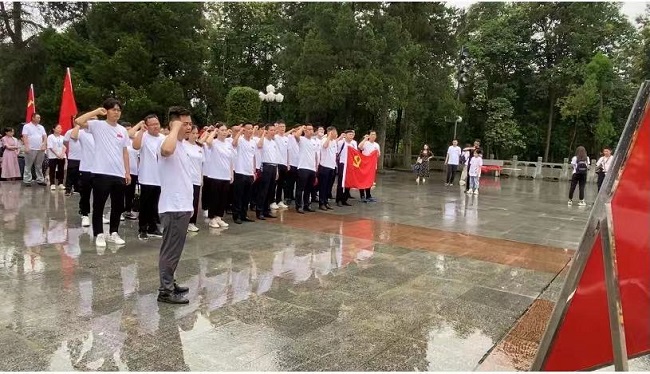 参观展览结束后,全体同志沿循环步道祭奠参观了红军烈士墓园。园内安葬革命烈士和已故老红军近200位,同志们身临其境地感受到金寨红军烈士忠贞不屈、甘于奉献的高贵品格和革命精神。在洪学智将军纪念碑前,同志们分批进行了默哀与致敬鞠躬。青松翠柏旁,庄严肃穆地回顾了两膺上将的共和国领导人的光辉一生,感慨良多。两名党员代表向革命烈士敬献花篮,分公司副书记、总经理代杰上前整理缎带。随后,全体同志面向烈士纪念碑三鞠躬,并庄严宣誓,重温入党誓词,坚定入党初心。