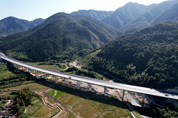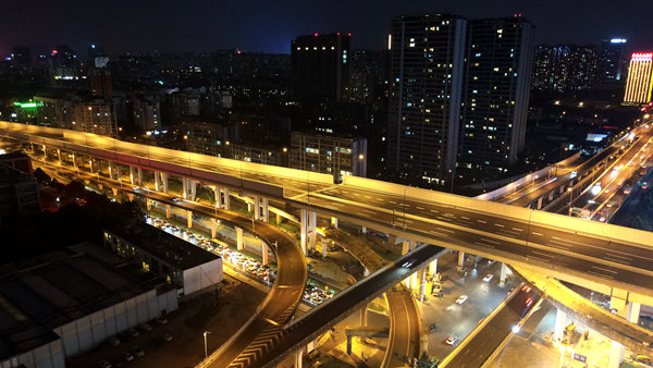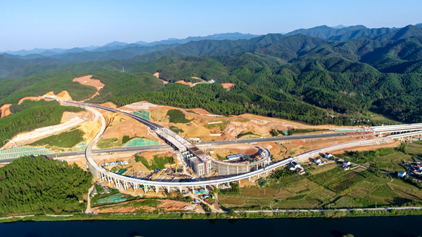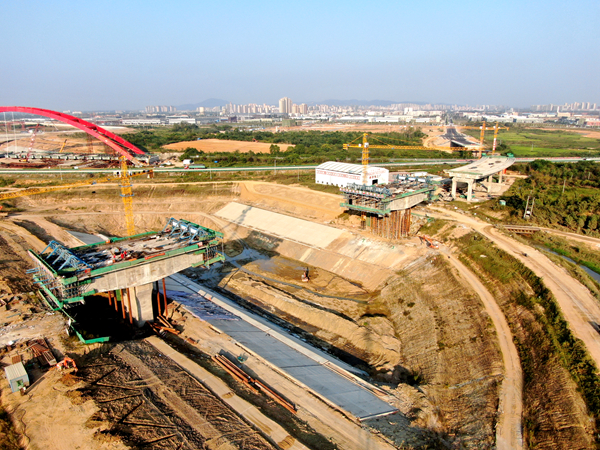 进入9月,位于皖南山区的安徽路桥道路分公司宣泾高速泾县枢纽互通项目施工现场,呈现出白天一片热火朝天、夜晚依然灯火通明的大干景象。远远望去,只见立体式的互通环环相扣,一排排高低整齐的满堂支架沿着山谷向四方辐射,在青山映衬之下,颇为壮观。