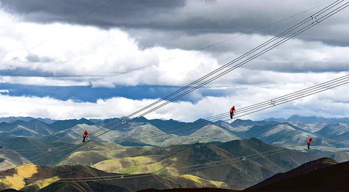 图为2021年6月11日,国家电网四川送变电公司党员先锋队员对四川省甘孜州两河口水电站500千伏送出工程线路进行消缺验收。 国务院国资委供图 刘湘钒/摄