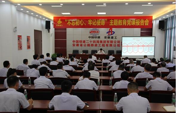 7月30日下午,建工控股党委委员、股份公司总经理许克顺到安徽路桥公司承建的轨道交通4号线01标项目讲授主题教育专题党课,公司领导、中层管理人员及项目党员等80余人参加了学习。