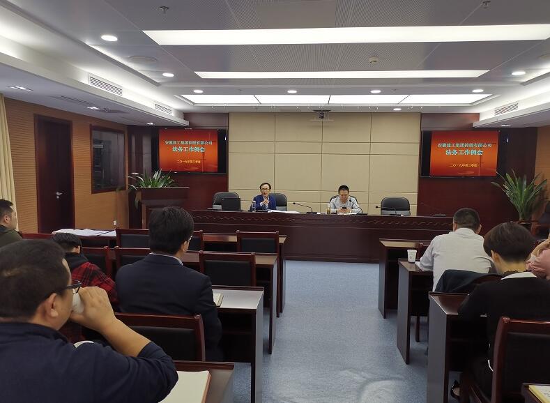 2019年10月18日下午,安徽建工集团控股有限公司2019年三季度法务工作例会在安建大厦28楼会议室召开。集团总法律顾问申玉恩以及所属各单位法务工作人员共50余人参加会议。
