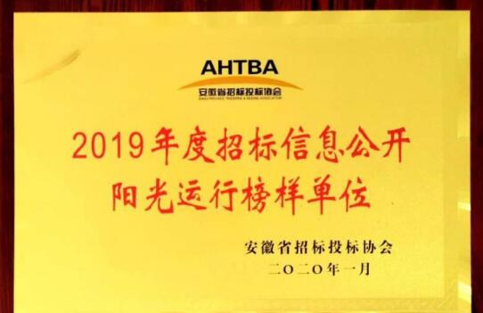 新年伊始,安徽省招标投标协会二届五次理事会暨二届六次常务理事会在合肥召开,会议公布了协会2019年度“新闻宣传突出贡献单位”、“ 招标信息公开阳光运行榜样单位”、“ 招标投标行业学习型集体”等名单。 协会领导现场为获得奖项的单位和个人授予了奖牌和荣誉证书。安徽建工集团股份有限公司荣获“2019年度招标信息公开阳光运行榜样单位”和“2019年度安徽省招标投标行业学习型集体”。