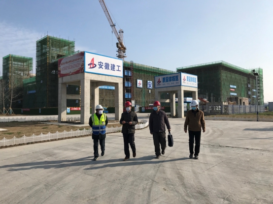 3月3日上午,建工控股党委委员、股份公司董事长王厚良轻车简从来到安建建设淮南卫生学校新校区项目,调研督导疫情防控和复工复产工作,股份公司工程管理部(安全监察局)部长(局长)范毓庆,安建建设党委委员、副总经理陈道兵参加。