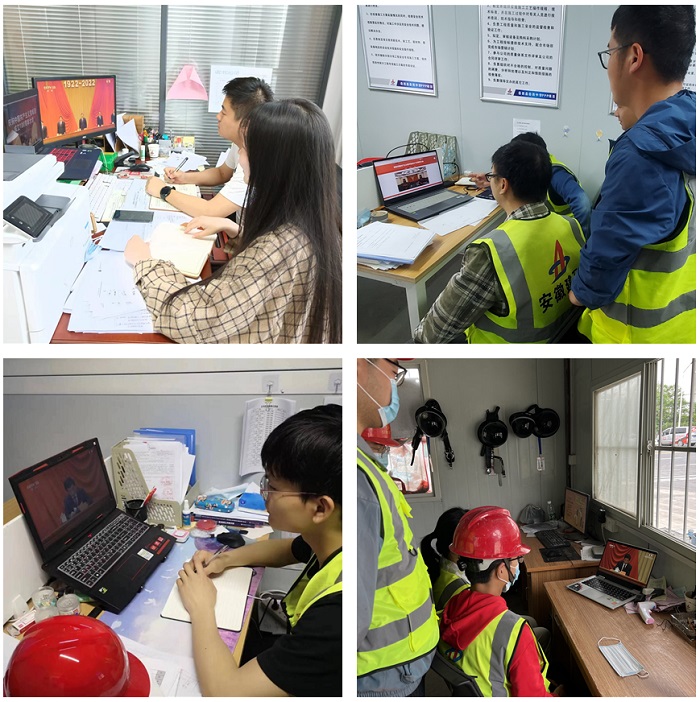 5月10日上午10点,庆祝中国共产主义青年团成立100周年大会在人民大会堂隆重举行,习近平总书记发表重要讲话。安建总承包团委第一时间作出工作部署,组织所属16个团支部200余名团员青年分别在属地、各项目部收看大会实况直播。