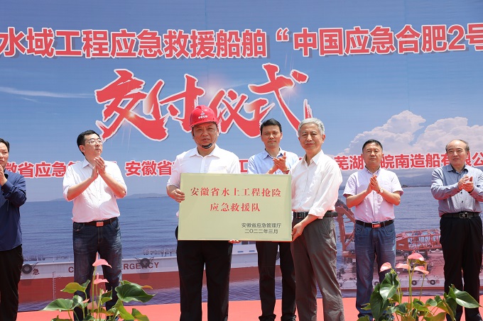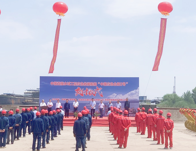 5月23日上午11时18分,伴随着船舶隆隆的汽笛声,在隆重的交付仪式中,中国首艘水域工程应急救援船舶“中国应急合肥2号”正式入列安徽交航应急救援基地。安徽省应急管理厅一级巡视员汪黎明,控股公司副总工程师、股份公司首席信息官吴红星出席仪式。应急管理厅救援协调和预案管理处处长魏文斌、三级调研员沈磊,芜湖市应急管理局副局长程克柱,安徽省皖江船舶检验局副局长孙成岭、王其端,芜湖市皖南造船有限公司副总经理陆青松等参加上述仪式。公司党委书记、董事长方申柱主持仪式。