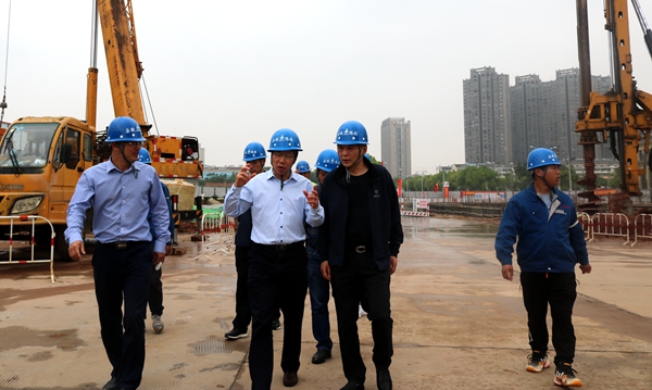 5月12日下午,建工控股党委委员、股份公司董事长王厚良到轨道交通3号线南延2标调研指导工作。