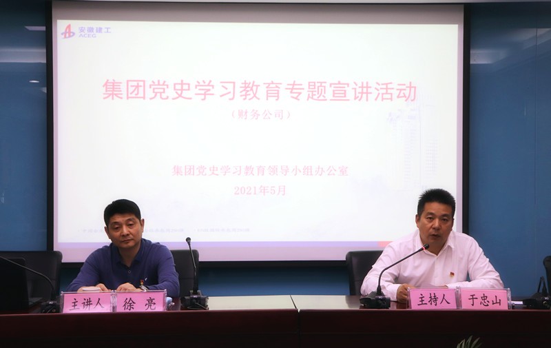 根据集团党史学习教育领导小组《关于做好党史专题宣讲工作的实施方案》部署,5月21日集团第十八宣讲组到安建金融开展了党史学习教育专题宣讲会。会议由股份公司党委委员、财务总监徐亮宣讲,公司党总支副书记、总经理于忠山主持,金融板块全体党员及入党积极分子参加。