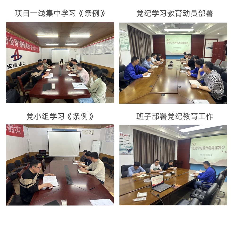 建工安装安庆分公司党支部迅速落实集团、公司开展党纪学习教育工作的要求,及时召开动员部署会布置相关工作,推深基层一线学习党纪党规,认真学习《中国共产党纪律处分条例》以及典型案例通报,会议要求要用党规党纪校正思想和行动,知责明责、履职尽责,以优良作风确保部分公司党纪学习教育正确有力、健康有序、取得实效。
