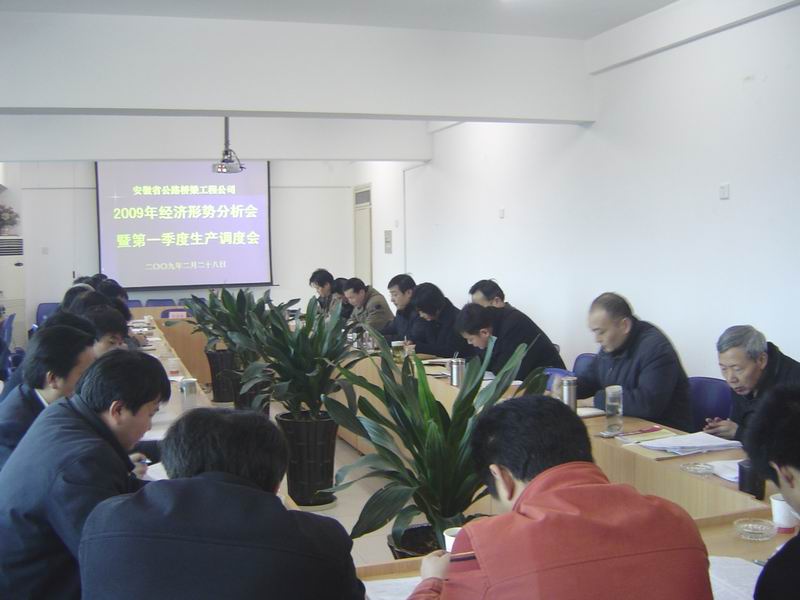 2月28日,安徽省路桥公司在四楼会议室召开2009年经济形势分析会暨第一季度生产调度会。公司领导班子成员、直属(生产)单位负责人、机关部门负责人、直属项目部经理、总工和财务负责人共计50余人参加了会议。会议由副总经理盛明宏主持。