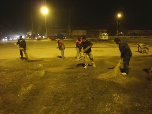 上午8点许,经过7日一夜的交口清理,市政北二环开始有计划有步骤的进行摊铺交口桥面部分的施工工作。施工过程中,项目部克服了交通不封闭等制约因素,在确保安全生产的状态下,对交口桥面的防水层和交口两侧的沥青层进行有序开展、同时施工。