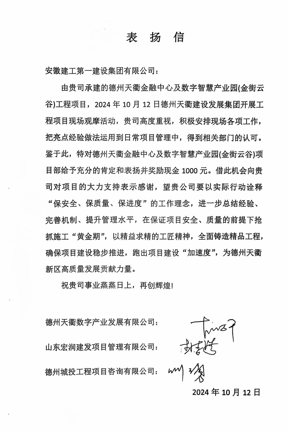 近日,天衢金融中心及数字智慧产业园项目在工程项目现场观摩活动中,因项目安全、进度质量管控优异,经天衢建设发展集团评议,荣膺第一名,并获建设单位、监理单位、项目管理单位集体表扬。