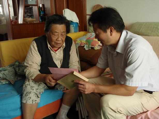 9月22、23日上午,在建国60周年到来之际,安徽建机公司党委书记王爱国同志率领工会、党工部负责人及离休支部工作人员看望、慰问离休老干部,为他们送去省委组织部的慰问信和企业给予的600元慰问金。王书记与老干部们亲切交谈,叙说家常,祝福他们晚年幸福、安康,在举国上下共同迎接祖国60华诞的喜庆时刻,老干部们深切感受了党组织的关怀与温暖。 (党工部)