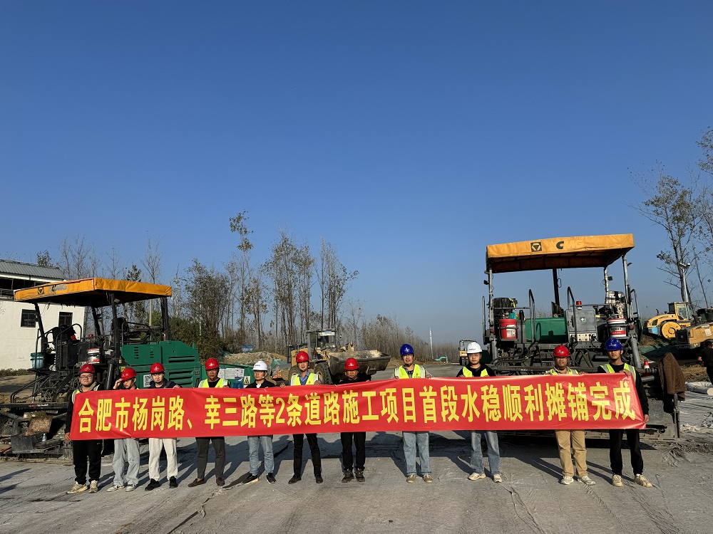 2024年11月12日,合肥市杨岗路、幸三路等2条道路施工项目底基层水稳摊铺顺利完成!