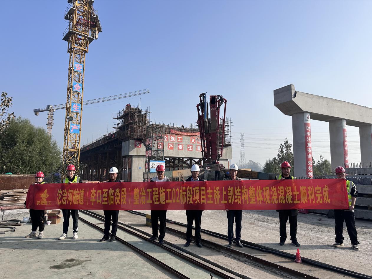 11月12日,随着最后一方混凝土入模,经过27个小时的连续奋战,沱浍河航道(李口至临涣段)整治工程施工02标段项目主桥上部结构横系梁及拱脚一次性整体性浇筑顺利完成。