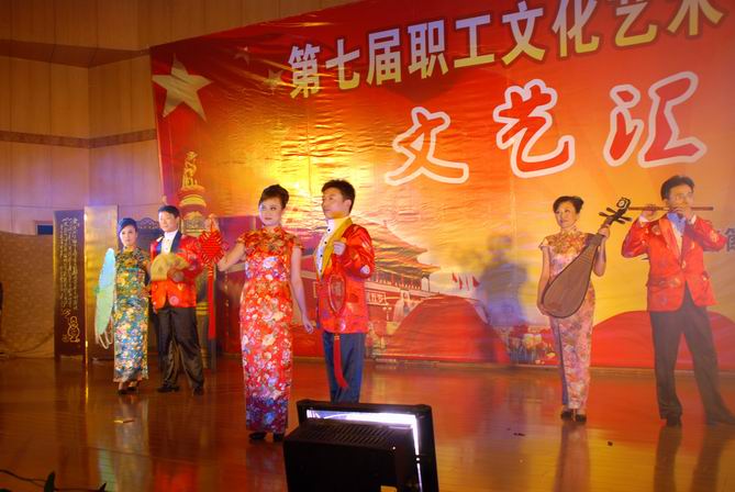 在举国欢庆新中国60华诞之际,作为刚跨入集团生产经营第一方阵的安徽建工国内工程公司,也即将迎来自己的5岁生日,在这同喜同庆的好日子里,公司员工自编、自演的《我们与祖国同行同美》,集视觉、听觉、时间和空间多种元素,把服装、音乐、小品、诗歌众多艺术完美融合,以独特的表演形式,展现了与祖国同行同美、与建工人同舞同秀的精神风貌。