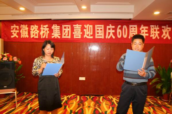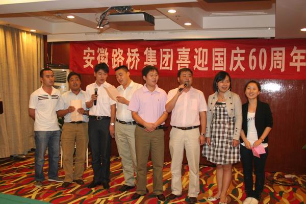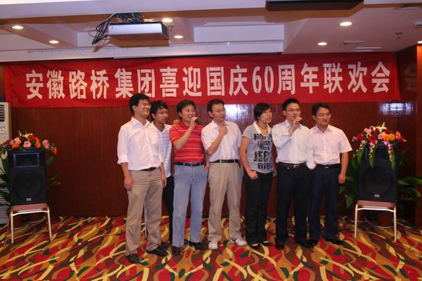 金风送爽飘桂香,皓月相聚情意长。为进一步增进与基层员工的沟通联系,促进企业和谐发展,提升企业凝聚力。9月26日下午,省路桥集团在肥举行“喜迎国庆60周年联欢会”。 公司领导班子成员,各直属项目主要负责人、生产技术管理骨干代表,各类先进分子70多人欢聚一堂,共同庆贺伟大祖国60岁生日和传统中秋佳节以及公司今年来各项工作所取得的业绩。联欢会由该公司办公室夏磊和李晓明主持。