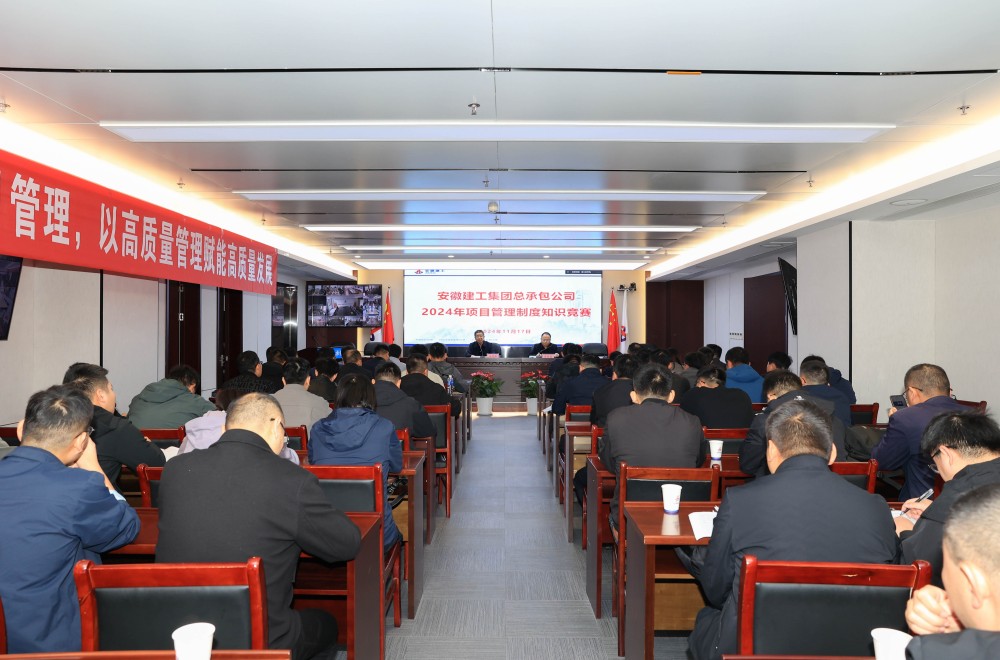 11月17日周日,建工总承包项目管理制度知识竞赛在安建国际大厦10楼举行,公司副总经理王庆松到场指导。