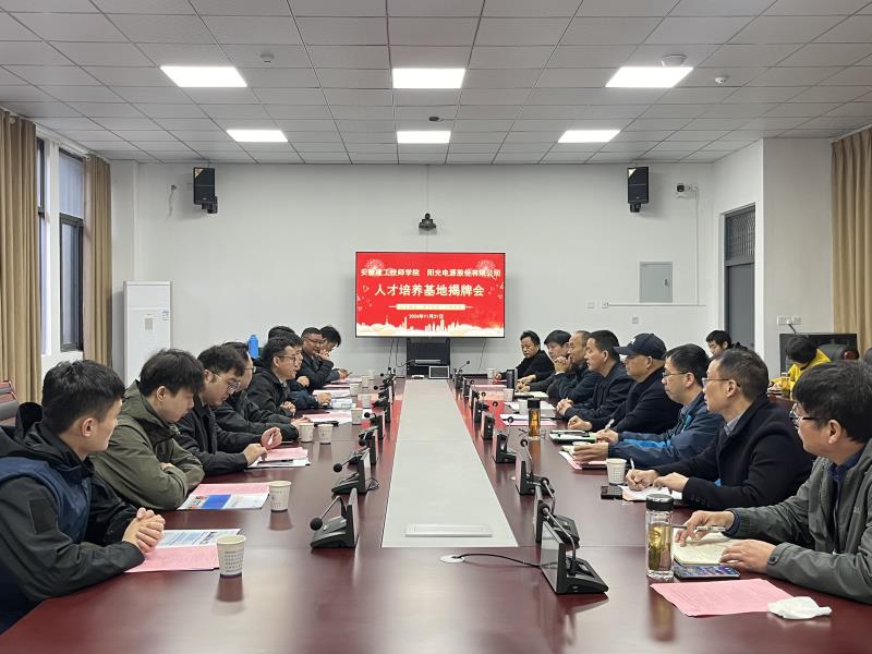 11月21日,安徽建工技师学院水湖校区举行“阳光电源”产教融合人才培养基地揭牌仪式。合肥市高新区人事劳动局副局长姚迪、就业处处长刘浩,阳光电源股份有限公司人事部经理樊琦,安徽达才教育科技有限公司总经理徐玄颖等有关领导嘉宾参加揭牌仪式和座谈会。学院党委副书记、院长黄国平等院领导班子出席仪式。