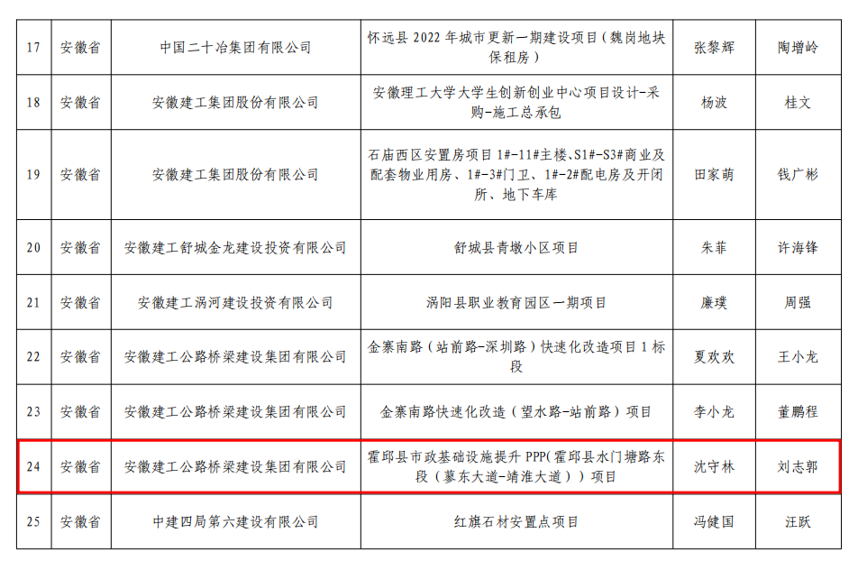 近日,在全体参建单位共同努力下,安徽建工投资建设的霍邱县市政基础设施提升PPP项目子项水门塘路东段项目获评“2024年度华东地区建筑施工安全生产标准化工地”称号。