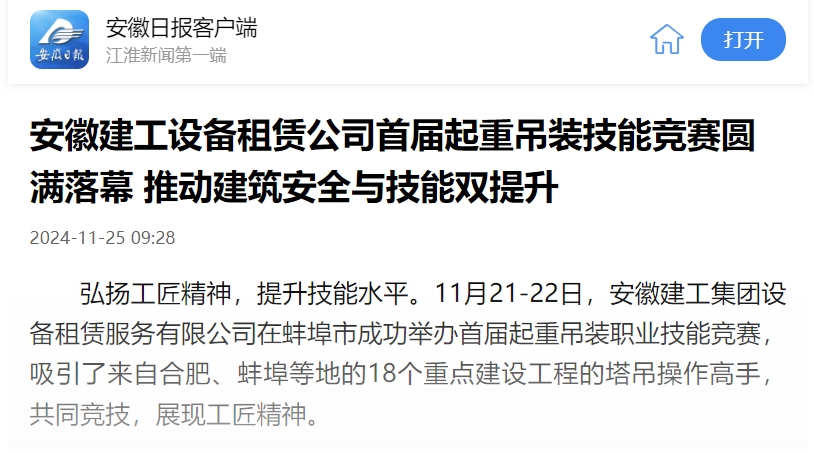 11月21-22日,安徽建工集团设备租赁服务有限公司在蚌埠市成功举办首届起重吊装职业技能竞赛,竞赛以“当好主人翁 建功大发展”为主题,吸引了来自合肥、蚌埠等地的18个重点建设工程的塔吊操作高手,共同竞技,展现工匠精神。