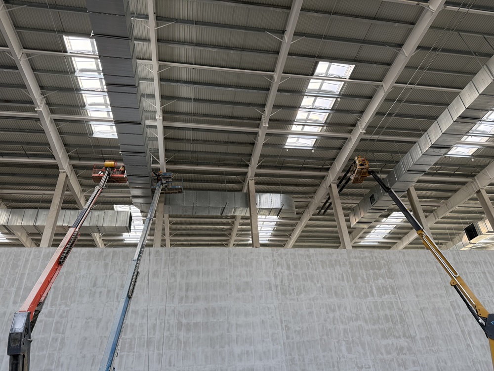 本周,焊装车间已完成全部实物工程量,循环水、空调水、消防水、生活给水、冷凝水、虹吸雨水等全面进入系统试压阶段。同步配合完成了总包单位焊接机器人进场的细节工作。目前,车间一QA楼与冲压车间正在进行安装工作,能源中心同步施工,冷却塔、板式换热器已有序进场安装。