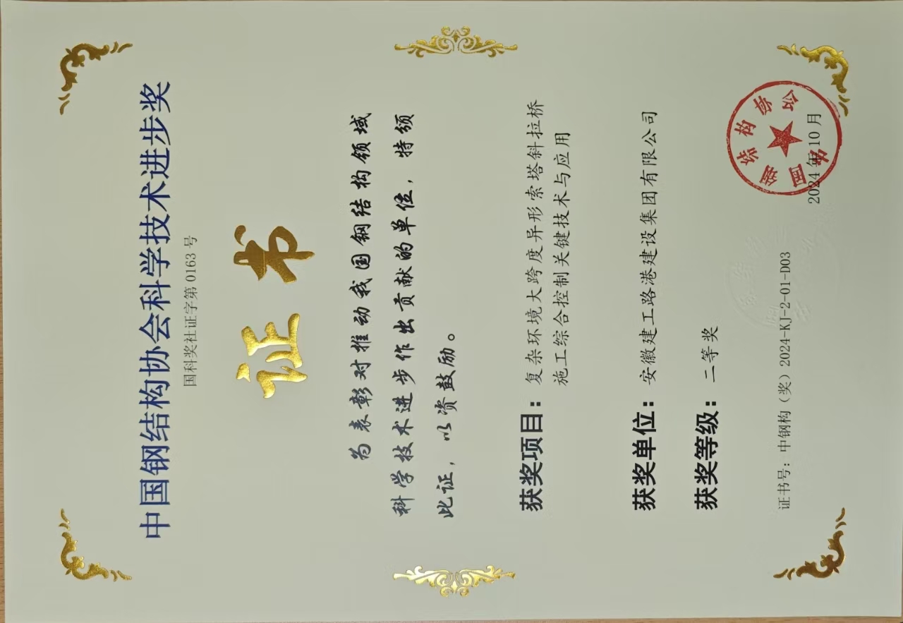 近日,“中国钢结构协会成立40周年大会暨2024中国钢结构大会”在北京召开,建工路港“复杂环境大跨度异形索塔斜拉桥施工综合控制关键技术与应用”项目荣获中国钢结构协会科学技术奖二等奖。