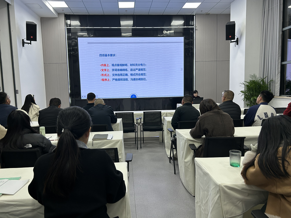 黄俊筠围绕“日常办公制度、常见公文写作要点、商务礼仪”等方面内容,重点解读了业务接待、差旅费、跟进督办等日常办公制度。结合自身工作体会,黄俊筠用丰富的课件内容,由浅入深地讲解了常用公文的写作技巧和接待工作的基本礼仪,并以实际案例分析工作中容易出现的问题和疏漏的细节,提出改进的方法。