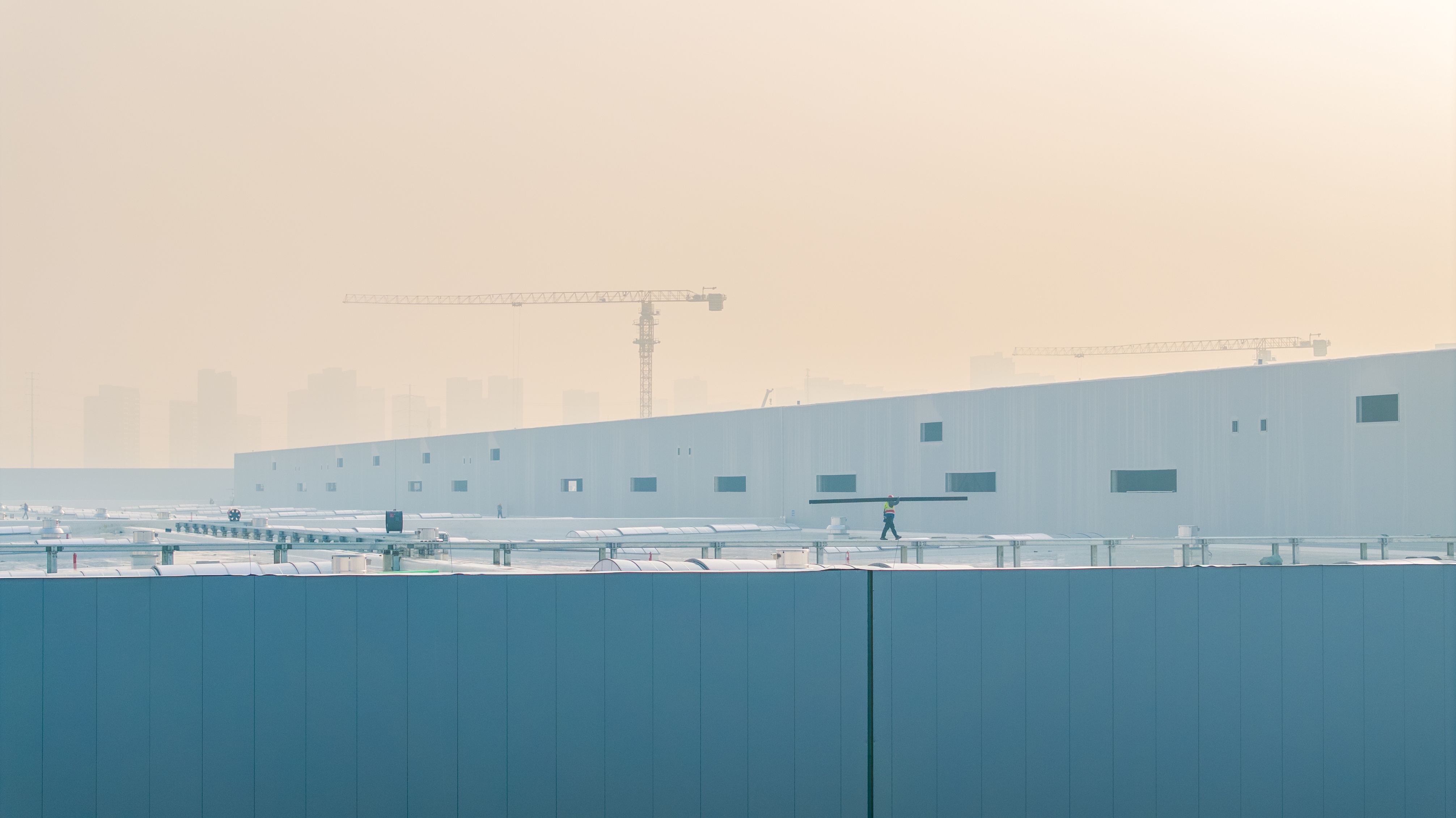 车间三:二次结构、油漆施工、墙体砌筑、地坪固化、ALC墙体、硅酸盐板、防火涂料喷涂、钢结构外墙板施工安装进行中;