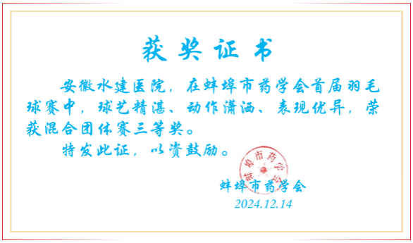 我院药剂科副主任张一鸣带领科室5名羽毛球爱好者参加此次比赛。比赛过程惊喜不断,比分不断刷新,面对对手,我院选手沉着冷静、敢打敢拼,每一分都力争到底,经过多轮激烈角逐,我院代表团最终荣获混合团体赛三等奖。