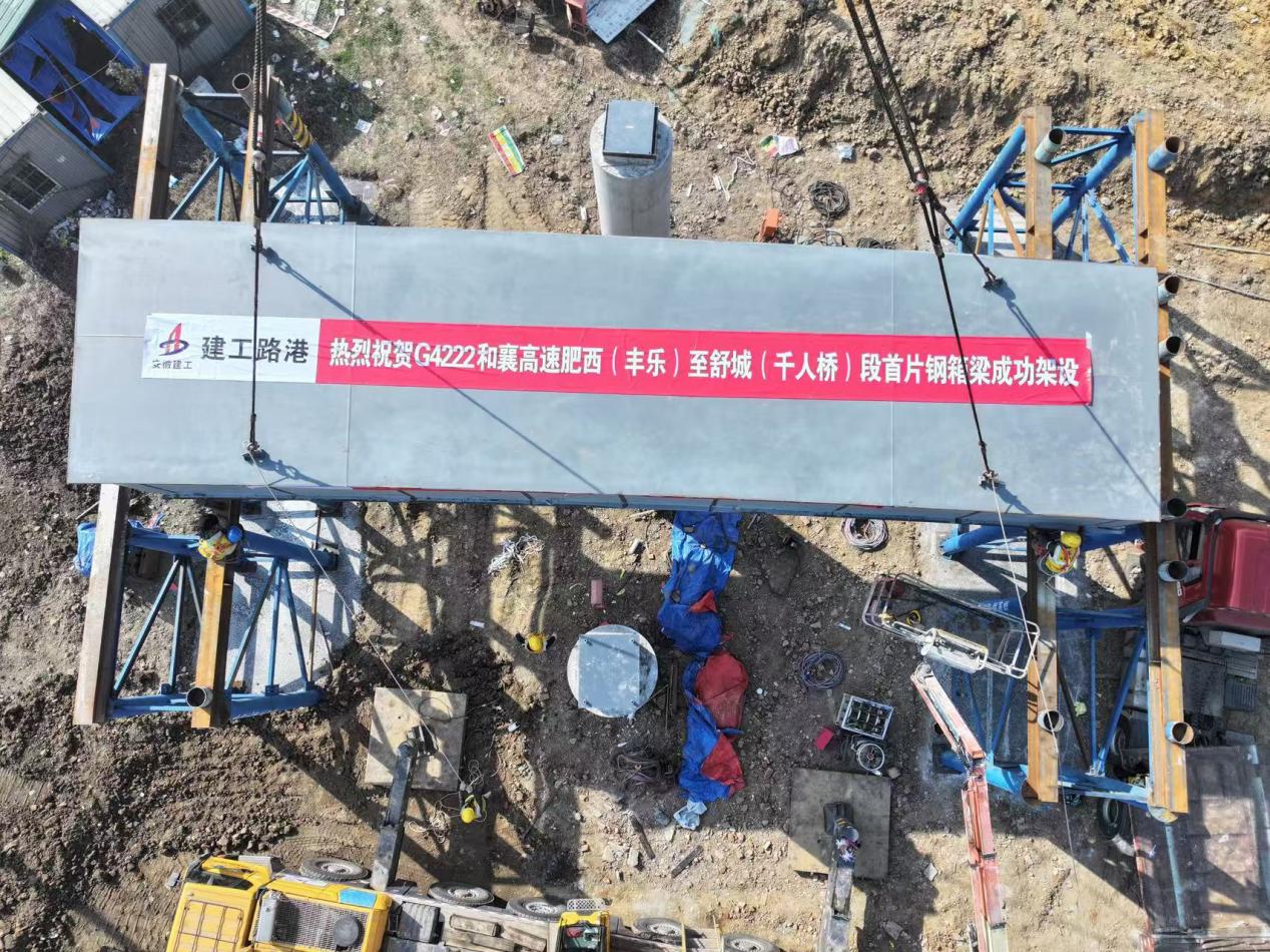 12月20日,G4222和襄高速项目首片钢箱梁成功吊装,为后续钢箱梁吊装施工奠定基础。