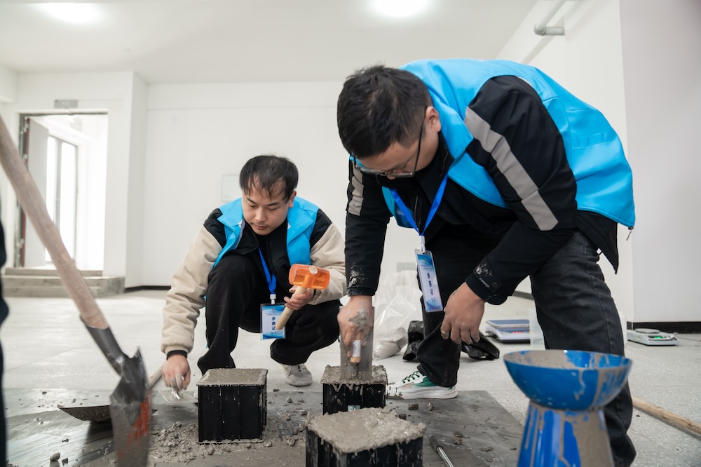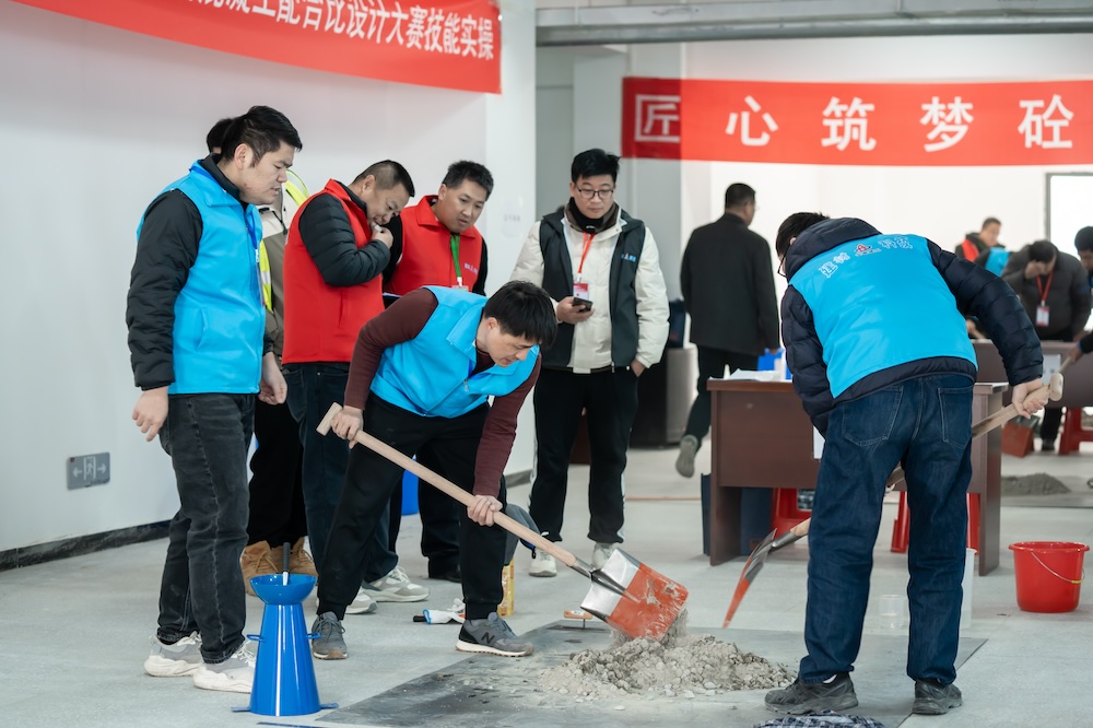 技能实操比赛采用手工拌制混凝土的方法进行,评判内容为:混凝土各种原材料的计量规范性、混凝土拌制的合理性以及拌和物主要性能试验的规范性和准确性。试验项目为:坍落度、扩展度,离析与泌水目测,立方体抗压强度试件等。竞赛结果将在测试完混凝土28d立方体抗压强度后经综合评分后,由组委会再公布大赛最终排名。