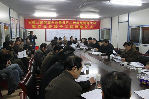 12月8日晚上6时,安徽三建滨湖办公服务区工程会战誓师大会在项目现场隆重举行。该公司十三个参战单位党政领导、有关部门负责人和项目全体管理人员、劳务班组代表参加会议。安徽三建公司党委书记徐晓光、副总经理左登宏出席会议。