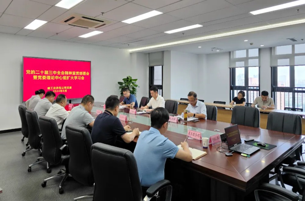 8月21日,建工总承包党委书记、总经理傅宏林在安建国际大厦12楼主持召开党的二十届三中全会精神学习宣贯部署会,公司党委理论学习中心组成员、机关部门相关负责人参加。